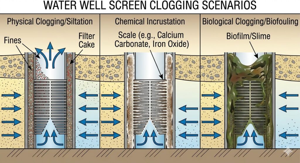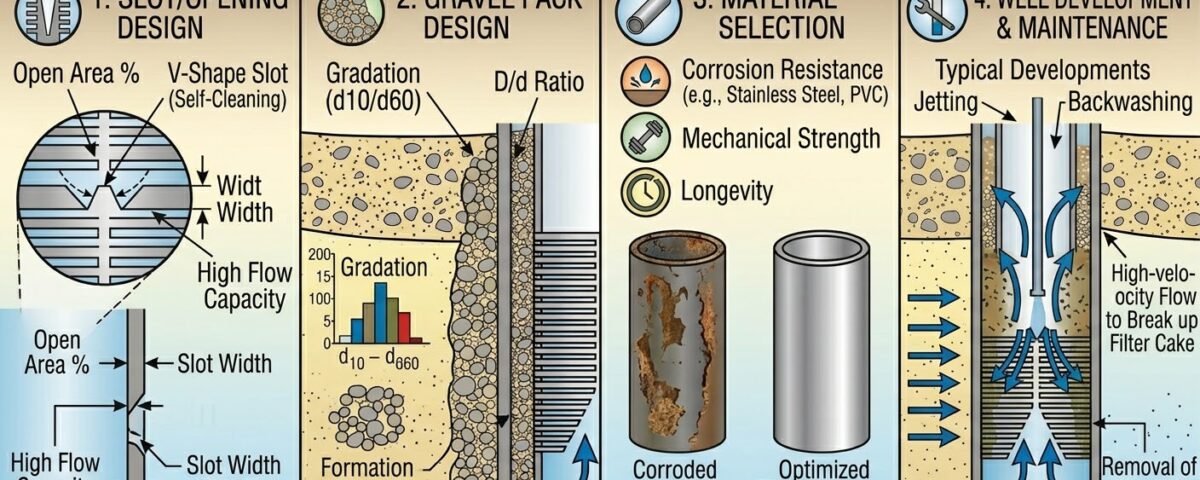 février 25, 2026Permettez-moi de commencer par une histoire. 2019, Comté de Pecos. Un puits d’eau municipal pour une petite ville – ils avaient dépensé $1.2 million drilling into the Edwards-Trinity aquifer. The consulting firm specified a wire-wrapped screen with 0.010-inch slots. Beautiful on paper. Perfect sand retention for their sieve analysis. Six months later, I’m pulling that screen and it’s completely plugged with fine sand and iron bacteria. The town had to truck water for four months while we redrilled. Cost overruns: $400,000. Cause? Personne n'a pensé à la chimie réelle de l'eau et au fait que leur “parfait” la taille de la fente était trop petite pour la variation naturelle de la formation.
