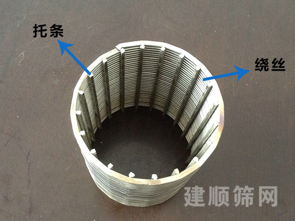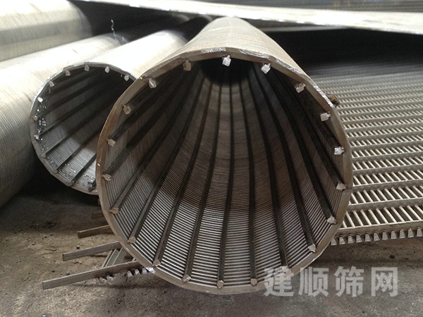 Lo schermo è fabbricato nella costruzione interamente saldata filo continuo fessura cuneo o asta di supporto, con l'ultimo sistema di saldatura a controllo elettronico, garantire una maggiore resistenza fusione tra il filo profilo a cuneo e aste di supporto mantenendo accurate apertura dello slot. La forma del filo cuneo deve essere tale che, quando saldata ad aste di supporto, esso aumenterà le aperture verso l'interno di slot. Il filo cuneo è saldamente essere allegata aste di sostegno che saranno, a sua volta, essere collegato all'adattatore accoppiamento. Gli offerenti devono fornire dettagli la dimensione e la forma dei fili e il numero di aste di supporto con dimensioni e forma.